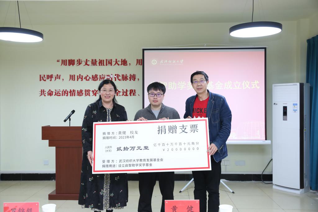 据悉,“启智助学奖学基金”是2022年黄健校友在其毕业中学江西省瑞昌市武山学校创立。本次在纺大,黄健意愿出资五十万元设立“启智助学奖学基金”,第一笔到账二十万元,用于传媒学院和中国竞彩