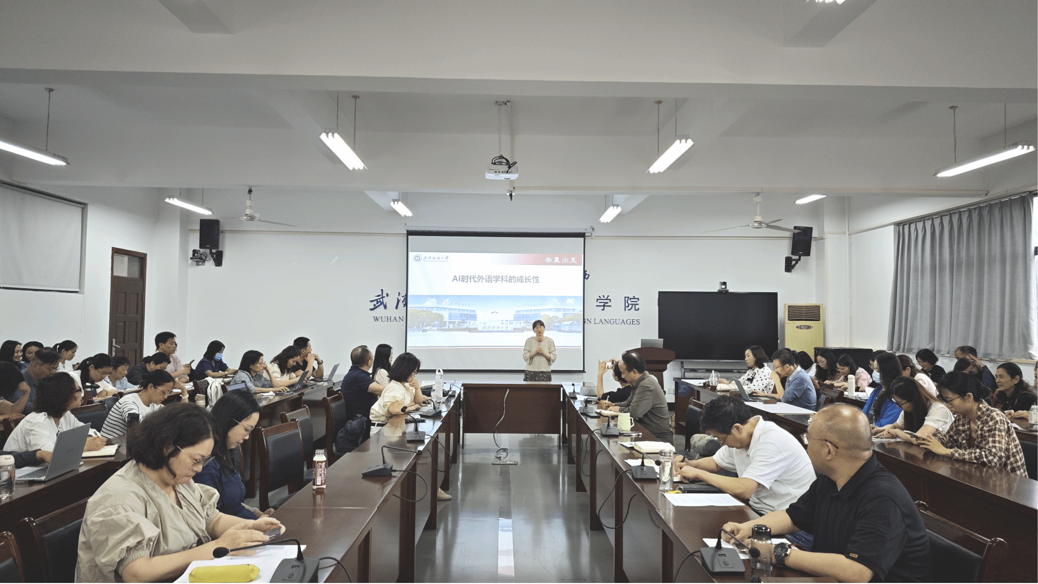 在崇文楼303举行以“AI赋能教育教学”为主题的教师发展论坛,全院教师参加了此次论坛。论坛由院长谭燕保教授主持。