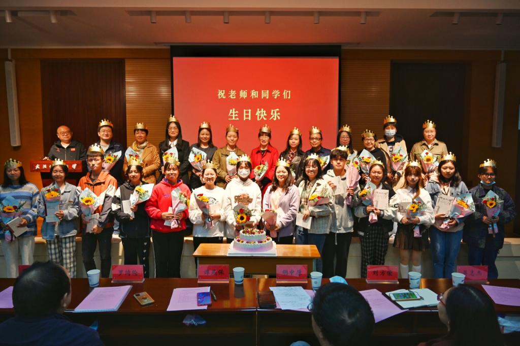 大家庭,开学典礼上为10月份生日的教师和新生举行集体生日,并准备了生日花束和蛋糕,师生齐唱生日歌,其乐融融,报告厅中洋溢着温馨和甜蜜。