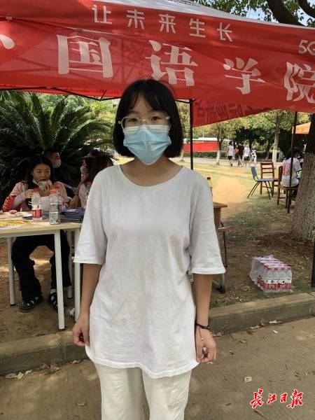 来自河南新乡的武汉纺织大学外国语大一新生周艳玲。 记者胡义华 摄