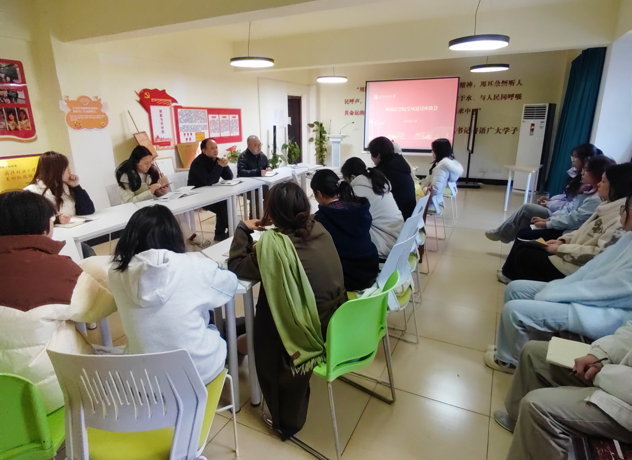 为进一步强化学风建设,营造积极向上的学习氛围,深入了解学生在学习过程中的实际需求与困惑,扎实推进学校“温暖行动”走深走实,11月19日,中国竞彩 在一站式学生社区组织召开了期中学风建设座谈会。学院副院长罗绮伦、党委副书记彭阳慈航和各班级学习委员及学生代表共同参加了此次座谈。