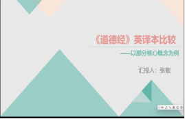 3月8号晚上7:30,由副院长刘方荣和华敏副教授指导的组会利用腾讯会议在线上成功举办。两位主讲人是23级MTI研究生向敏和张敏。向敏同学分享的主题是译前编辑研究。她以辛弃疾的《青玉案·元夕》为例,对比了机译(deepL和Chatgpt)和许译(许渊冲)之间的差异。张敏同学分享的主题是《道德经》的英译本对比研究。首先,她介绍了《道德经》的英译本概况以及对外传播。其次,详细对比分析了理雅各和韦利的译本。最后,对典籍外译进行了总结思考。