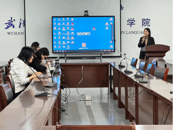 在老师们的点评环节,林莉老师认为同学们进步很大,非常自信地展现了真我风采。发言信息量很大,归结为一点,从传播意义来说,我们学习翻译应该思考如何讲好中国故事。田禹老师指出,今天的分享主要涉及三个方面:文学、翻译、语言学。什么样的词可以当作量词使用?是我们应该思考的。陈芬老师指出:许渊冲“三美”原则中“意美”不单单指意义美,还有意境美,要在把握古诗词韵律、长短、风格等审美特征的基础上尽量传达出原作的意境美。陈奇敏老师提到应该注意“字字翻译”和“直译”的区别,作为外宣文本的标题需要兼顾吸引力和符合目标语读者的语言规范。