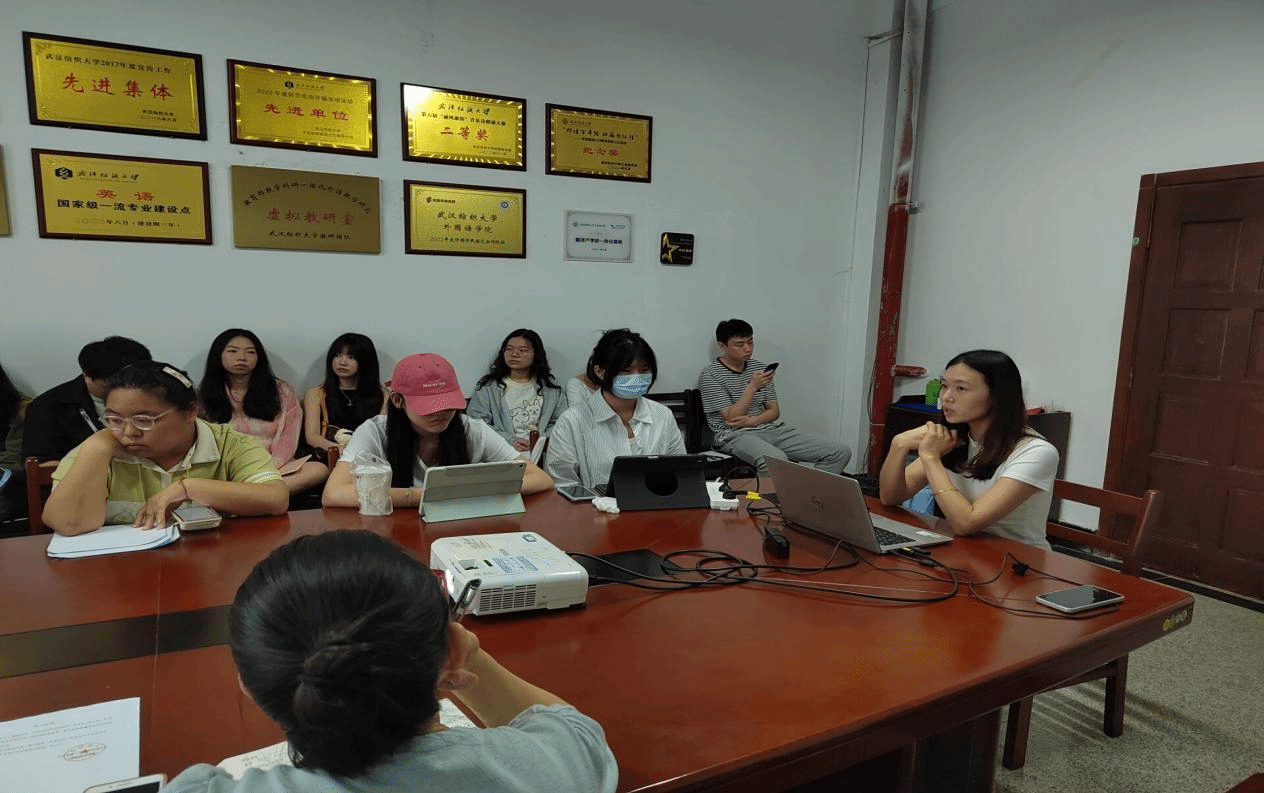 副院长罗绮伦、刘方荣,MTI教育中心刘珊、副主任华敏、陆雪芹,22级硕士生导师及22、23级MTI研究生参加了此次会议。本次会议还特邀武汉科译汉嘉信息技术有限公司人事经理Louise、武汉精译翻译公司负责人余建强、传神语联网网络科技股份有限公司项目经理周萍参加。会议由MTI教育中心刘珊主任主持。