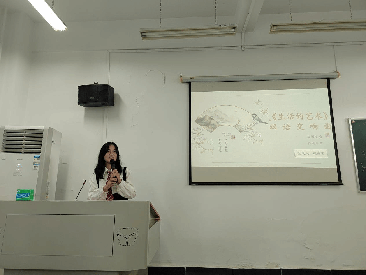 选手从暑期撰写的读书报告或翻译实践报告中选取内容,制作PPT,口头展示时间为每人5分钟。每位同学都带着精心准备的PPT,围绕各自感兴趣的方面,从“世界学”的广阔视角到“翻译美学”的细腻探讨,再到“思想上的理论”的深刻剖析,一一进行了精彩的汇报。同学们或引经据典,或结合实例,展现了研究生阶段学习的深厚积累与独到见解。老师们则认真聆听,现场气氛热烈而有序,智慧的火花在每一次交流碰撞中闪耀。