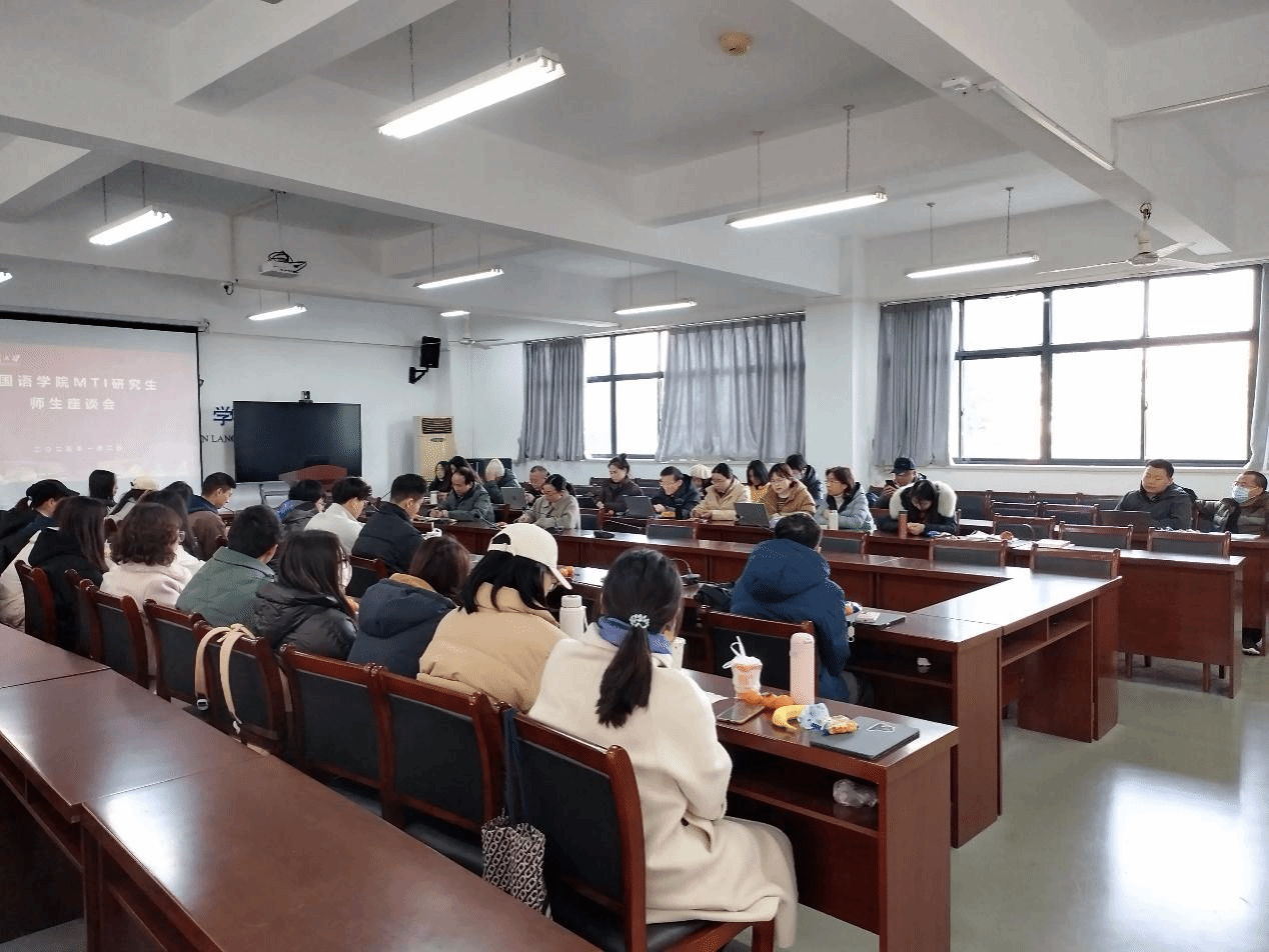 副院长刘方荣、副院长罗绮伦、MTI教育中心主任刘珊、副主任陆雪芹、全体研究生导师、任课老师以及2024级全体研究生参加了座谈。