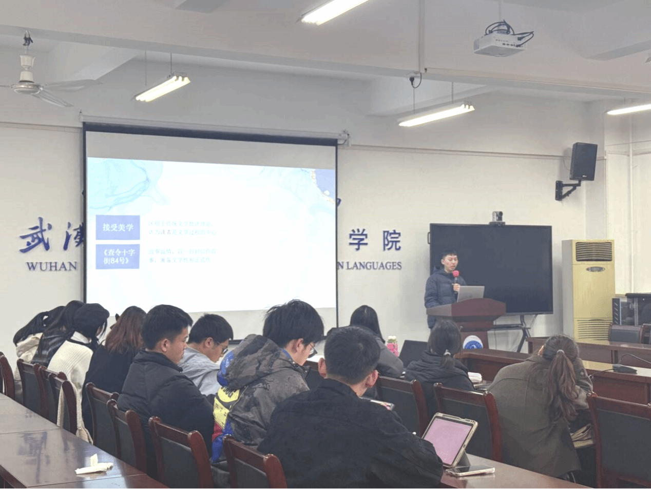 第三位汇报人陈嘉裕的主题为“从接受美学看书信体小说的翻译——以《查令十字街84号》为例”。陈嘉裕同学以《查令十字街84号》为例,从接受美学视角探讨书信体小说翻译。接受美学强调读者中心,其核心观点包括读者中心论、期待视野、召唤结构。案例分析中,译者在处理宗教词汇、人称称呼、句子结构、文化词汇等方面考虑了读者接受度,但部分翻译存在不足。书信体小说翻译需保留信件格式,把握人物关系,弥合文化缺省,平衡文学性与正式性,尊重目的语表达习惯并避免低频词汇。陈嘉裕同学认为,从接受美学出发,翻译书信体小说要全方位考虑读者因素,关注文化和语言差异,平衡多种要素,才能产出高质量译文,让读者更好理解和欣赏原著。