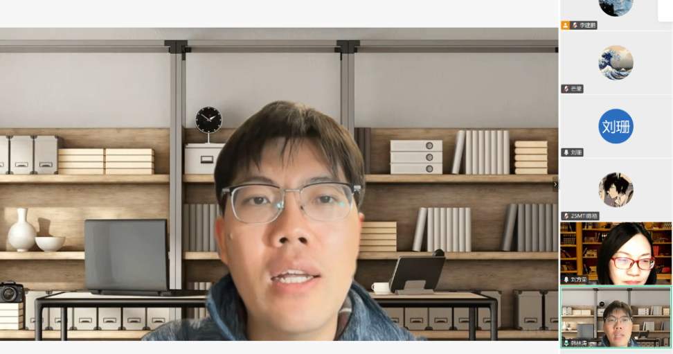 副院长刘方荣主持,MTI教育中心导师、任课老师及MTI研究生齐聚云端,共同聆听了此次讲座。