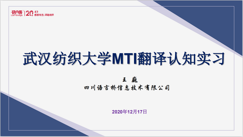 为了帮助MTI新生尽快熟悉专业翻译公司的运行环境及项目翻译流程与要求,12月17日下午,学院特邀我院企业导师四川语言桥信息技术有限公司副总裁王巍女士为我院20级MTI研究生做了一次线上翻译认知实习。本次活动由中国竞彩