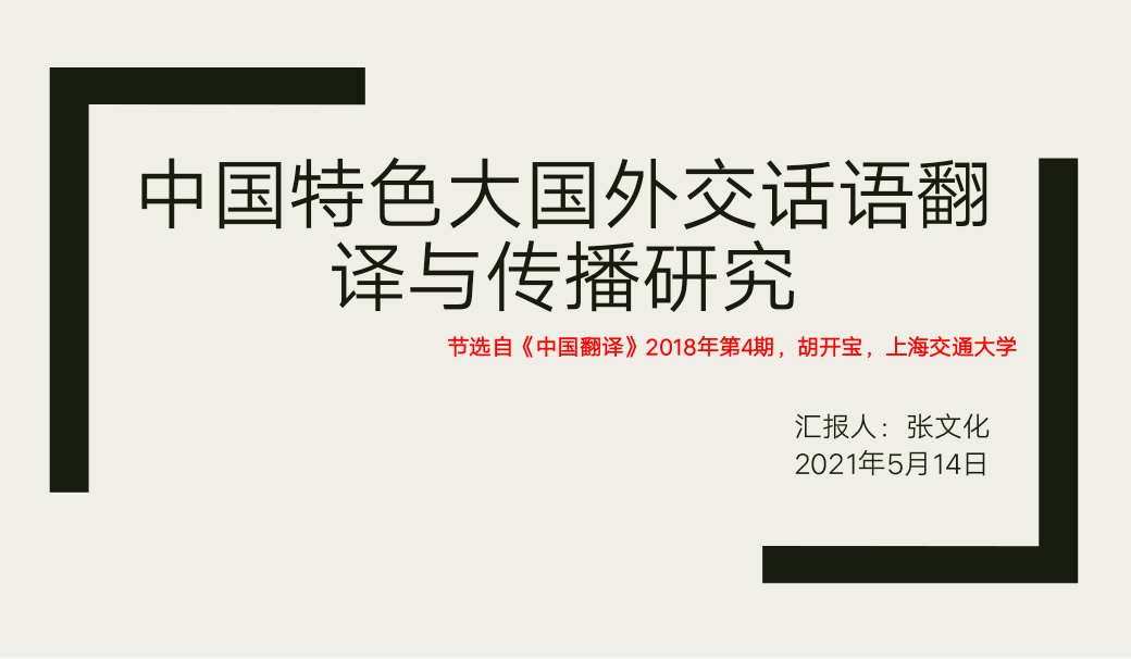 张文化同学以“中国特色大国外交话语翻译与传播研究”为主题,从传播渠道、传播受众和传播效应等角度分析中国特色大国外交话语传播的原则、策略与方法。目前,国际话语体系由西方国家主导,国际传播格局呈现“西强我弱”的局面。话语翻译和话语传播严重脱节是重要原因之一。这是因为我们很少考虑到话语的传播问题,以及未能将外交话语的翻译研究与其传播研究结合。而中国特色大国外交话语翻译与传播研究可以有力推动中国特色大国外交工作,为我国争取国际话语权、提升中国软实力提供智力支持。