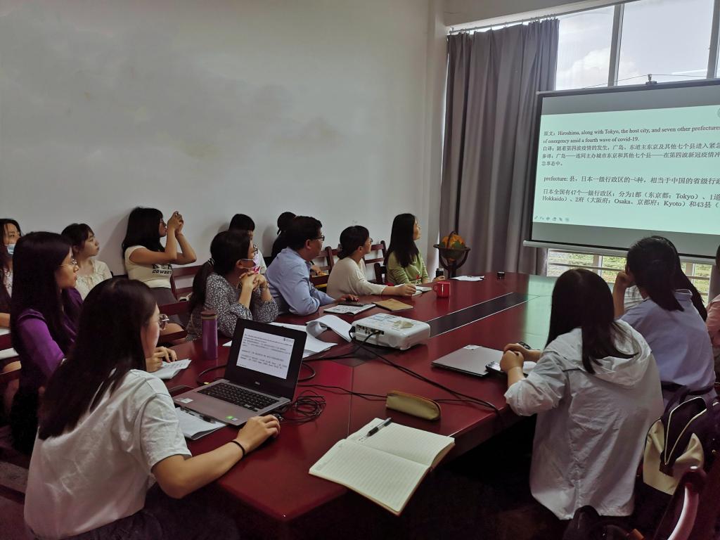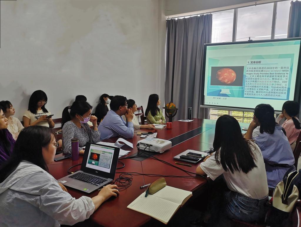 院长谭燕保教授,MTI教育中心陈奇敏副教授、赵伟副教授,王辞老师及全体20级MTI研究生参加了此次研讨会。