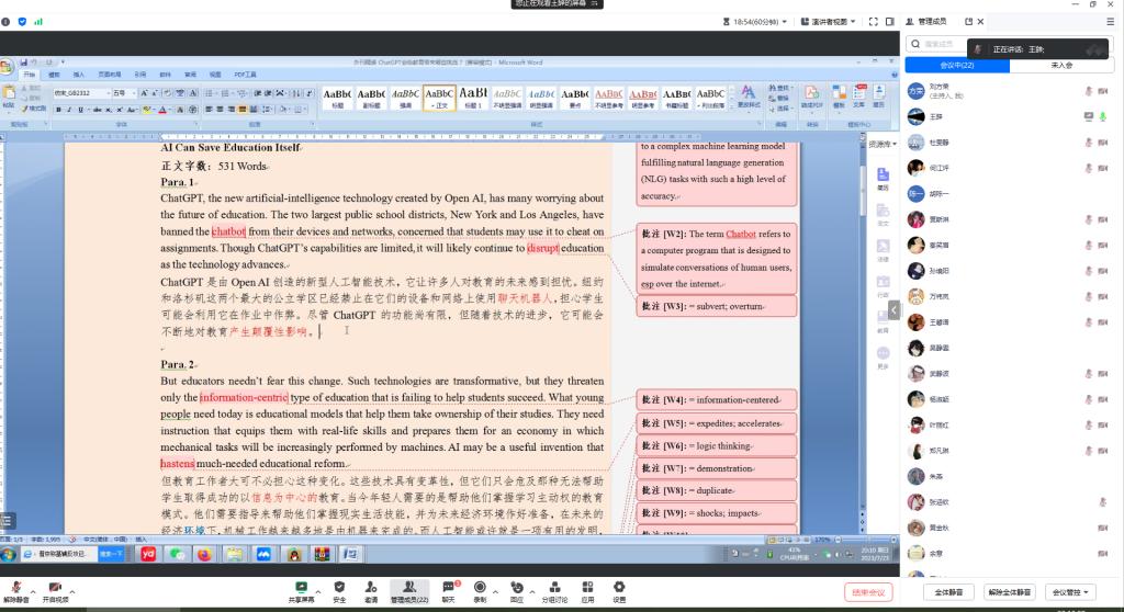 MTI教育中心通过腾讯会议成功举办了22级MTI研究生CATTI考试备战暑期第一次点评会,进行点评的是王辞老师。点评会由刘方荣副院长主持。
