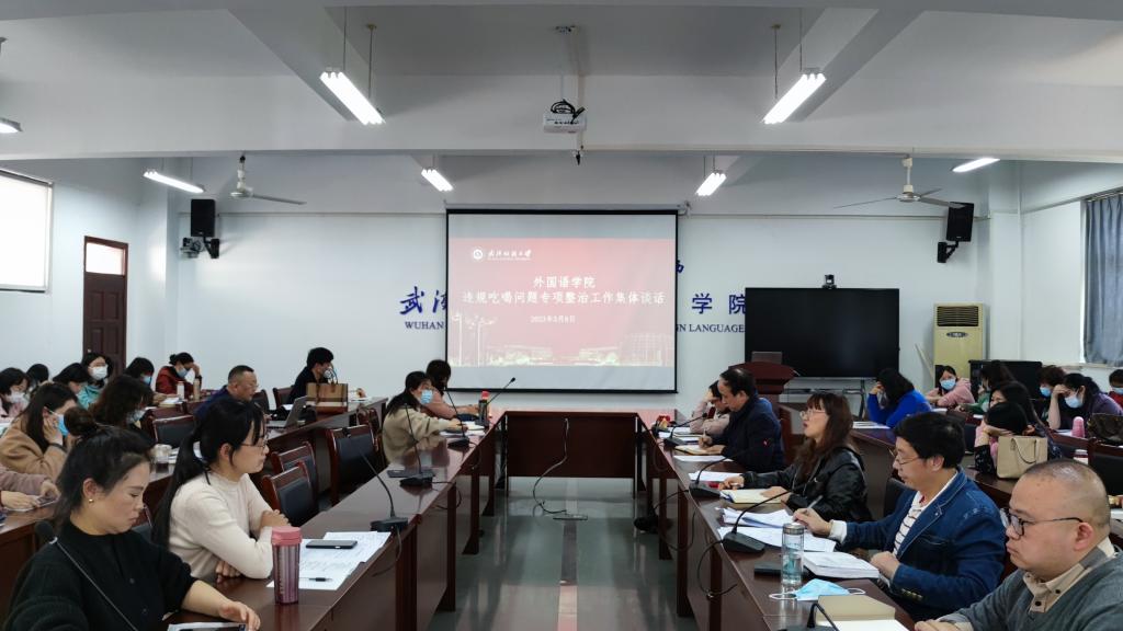 在3月9日下午开展违规吃喝问题专项整治工作集体谈话。学院领导班子、系主任、支部书记、办公室主任、实验室主任和教师代表参加会议,会议由学院党委书记胡中原主持。