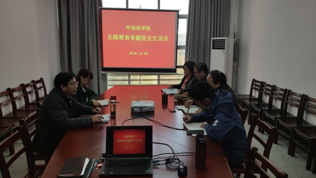 在崇文楼313会议室召开2019年领导班子“不忘初心、牢记使命”主题教育专题民主生活会。学院党委书记胡中原、副书记王芳、副院长罗绮伦参加会议,学院院长谭燕保、副院长柯群胜列席会议。民主生活会由胡中原书记主持。