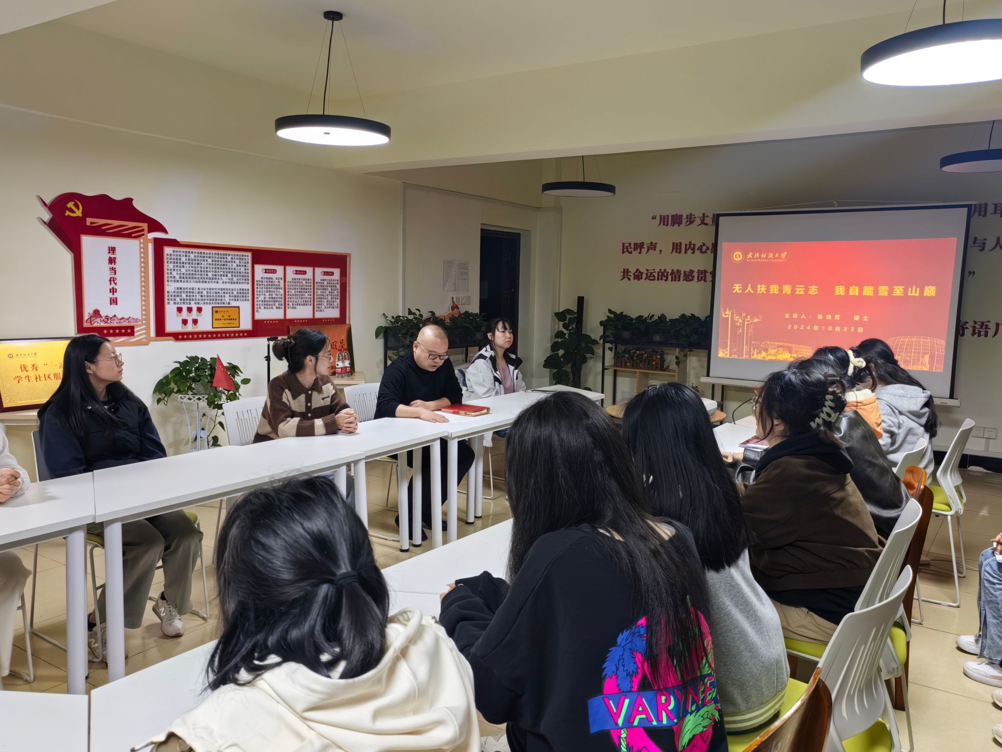 10月23日晚,成长导航“专家学者走进‘一站式’学生社区”活动在读“习”有声学生一站式社区举行。此次分享会邀请到纺织新材料与先进加工技术国家重点实验室青年骨干、2024年度全球前2%顶尖科学家张晓芳博士,与社区内同学们开展交流。来自社区内3个学院的本科生和研究生代表参与活动。