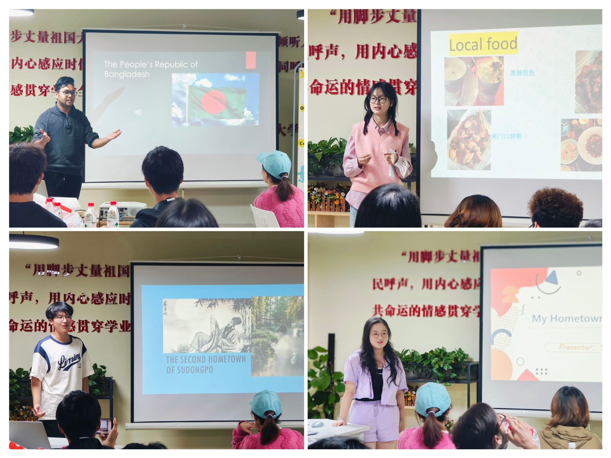 在“我来讲”部分,同学们围绕“Travel and Culture”这一主题,分享了各自旅行经历和对不同文化的见解。来自巴基斯坦的Zunair同学和孟加拉国的Ashiq同学分别介绍自己国家的地理位置、历史文化、特色城市以及风俗传统;中国竞彩