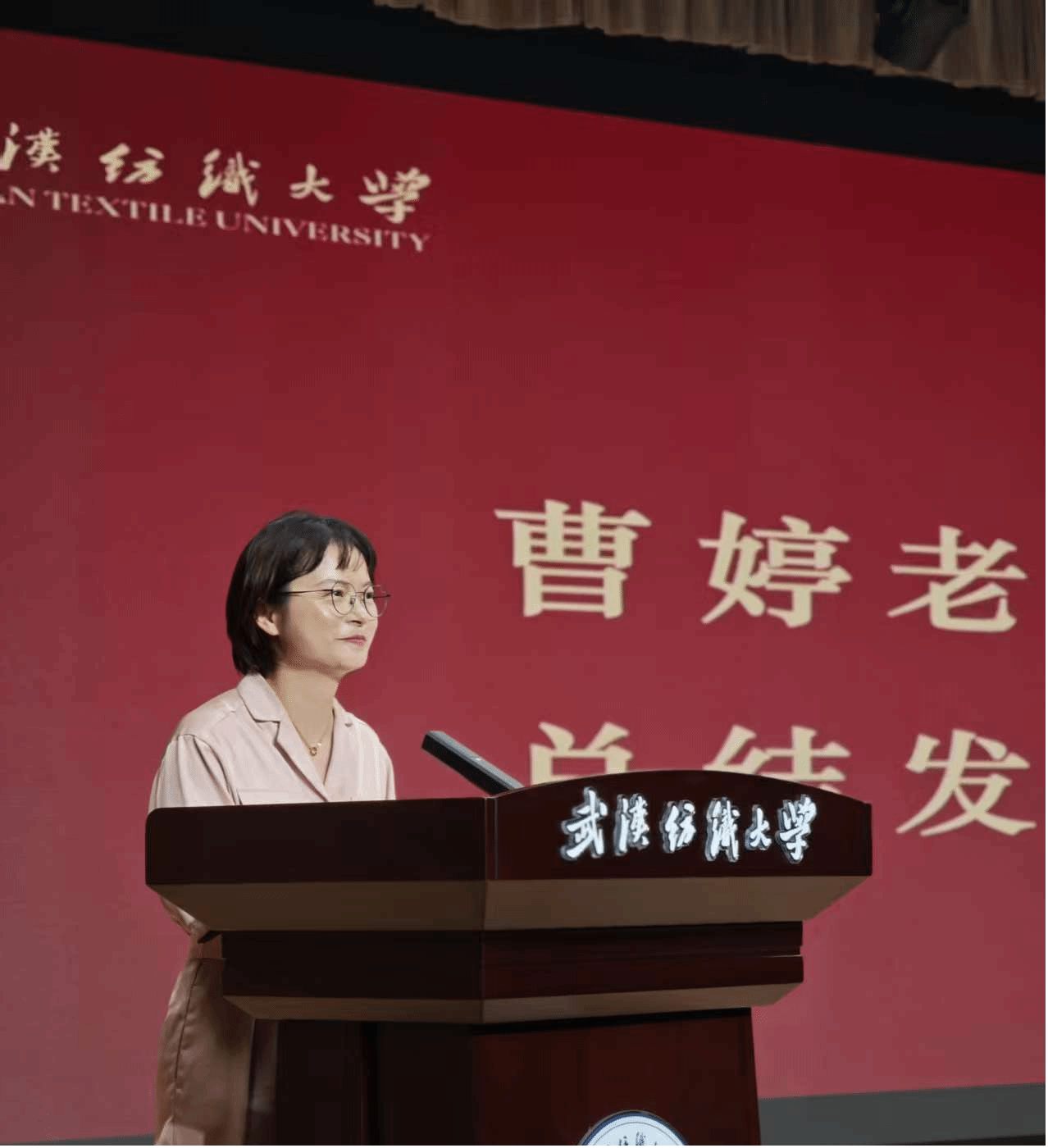 在激动人心的颁奖环节前,评委代表曹婷老师对本次比赛进行了精彩的点评。她首先充分肯定了所有参赛选手站上舞台的勇气和展现出的扎实语言功底。随后,曹老师也从专业角度对学子们提出了更高的期许。她希望同学们在今后的公共演讲中,能进一步精炼语言,追求更深层次的思想内涵与逻辑力量,让演讲不仅是一次语言的展示,更是一场思想的碰撞与情感的共鸣。最后,她向所有获奖选手表达了热烈的祝贺,并鼓励大家将此次经历作为新征程的起点,在“讲好中国故事”的道路上继续砥砺前行。