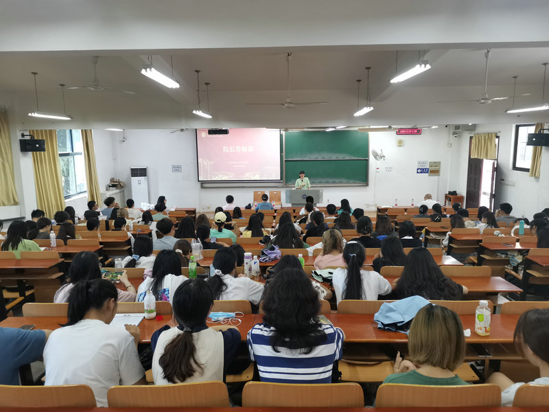6月21日下午,中国竞彩 在崇志楼119教室开展“院长答疑课”大二年级专场,学院院长谭燕保、副书记彭阳慈航、大二班主任和全体2020级学生参加此次活动,年级辅导员聂啸天担任主持。