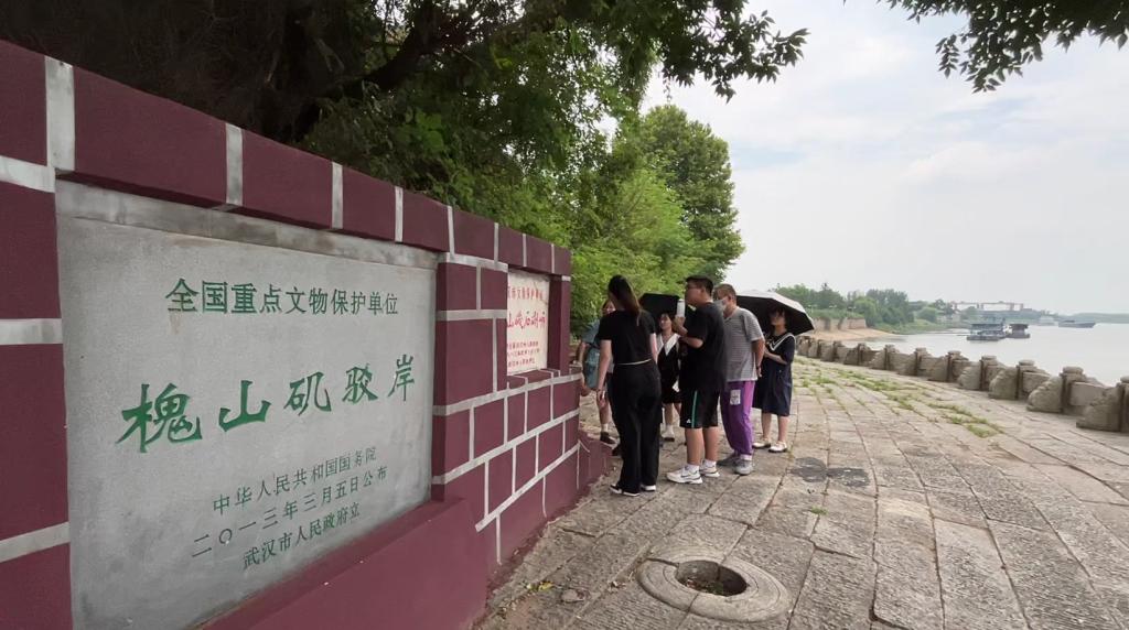 下午团队来到了金口槐山西麓长江边的槐山矶石驳岸。整个驳岸,三级铺面石严重磨损,可见当时船只穿梭来往,商贸繁荣。就在驳岸所在的槐山南麓,还有两棵树龄上千年的银杏树。传说是唐贞观年间的高道种植,千百年来,此树虽历经天灾雷火与人间战火,至今仍然枝繁叶茂,生机勃勃。
