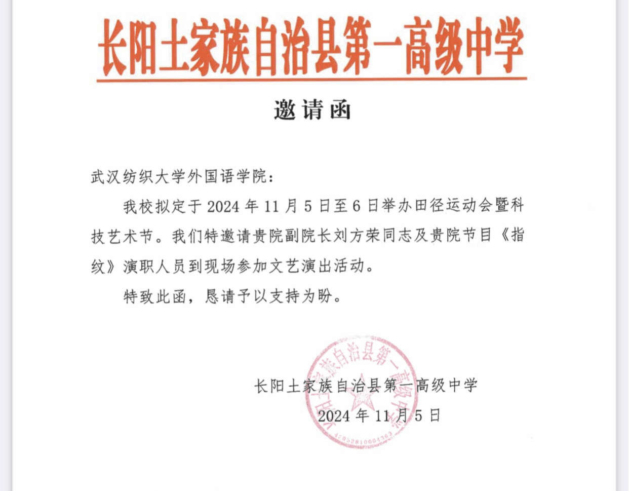 此次活动,不仅是一次精彩的文艺表演,更是两校友好交流的生动体现。我校学生在舞台上的出色表现,展示了商务英语专业学生的多才多艺,同时也让长阳一中的师生们对我校有了更深刻的印象,进一步拉近了两校间的距离,为未来的招生宣传、生源输送等工作搭建了更坚实的桥梁,也为两校的长期合作与共同发展注入了新的活力。