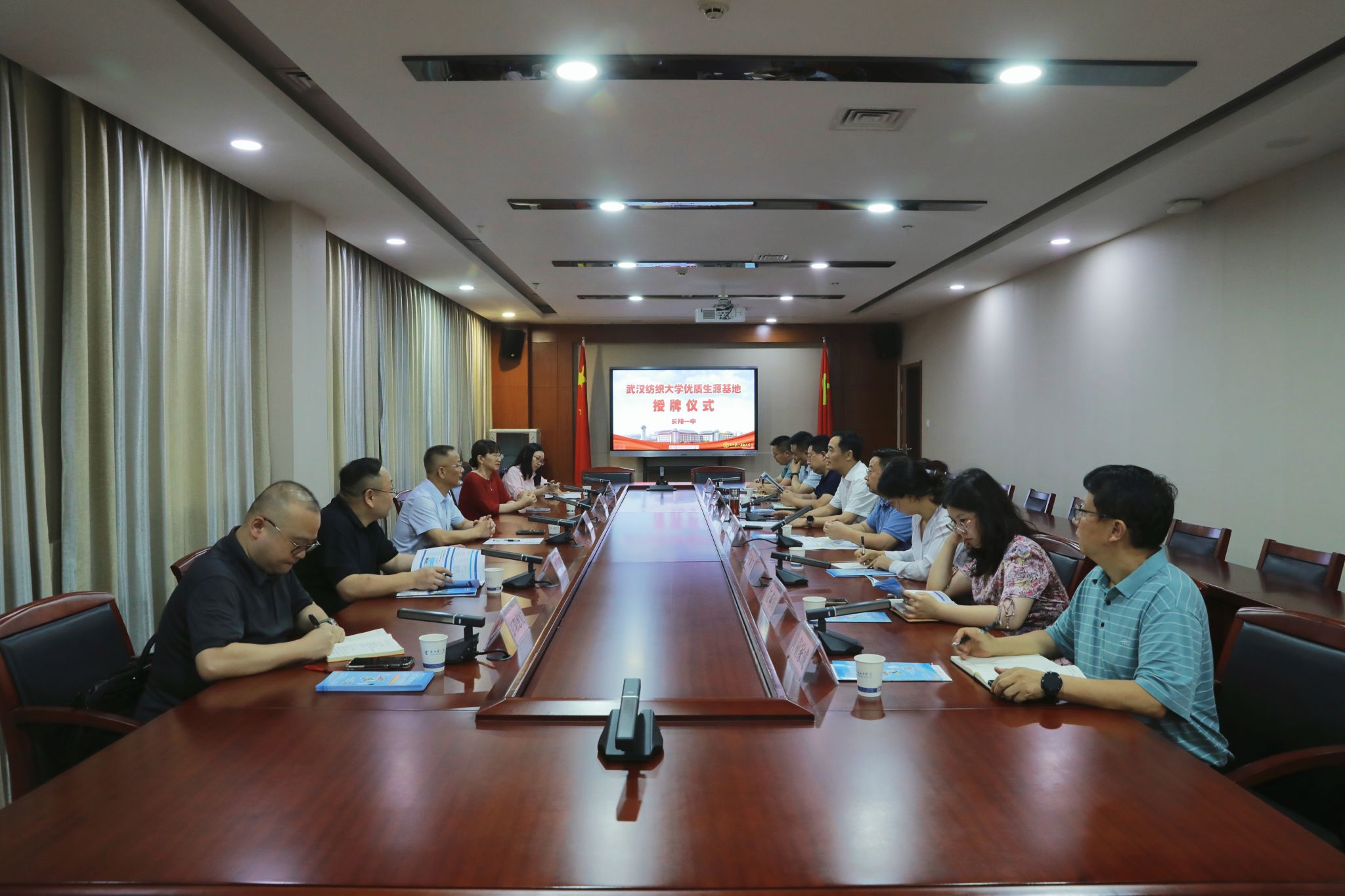 在长阳一中授牌仪式上,长阳土家族自治县副县长李钦致欢迎词,他向罗锦银一行介绍了长阳悠久的文化历史、丰富的自然资源和高中教育情况。他表示,武汉纺织大学在长阳一中建立优质生源基地,是对长阳教育的认可和鼓舞,长阳将持续加大纺大在长阳的宣传力度,注入更多的优质生源,持续加强各方面的交流和合作,构建合作共赢发展的局面。长阳县教育局局长田贞徐、副局长王凤乔,长阳一中党委书记覃茂,党委副书记、校长江汉桥及相关负责人、班主任参加座谈。