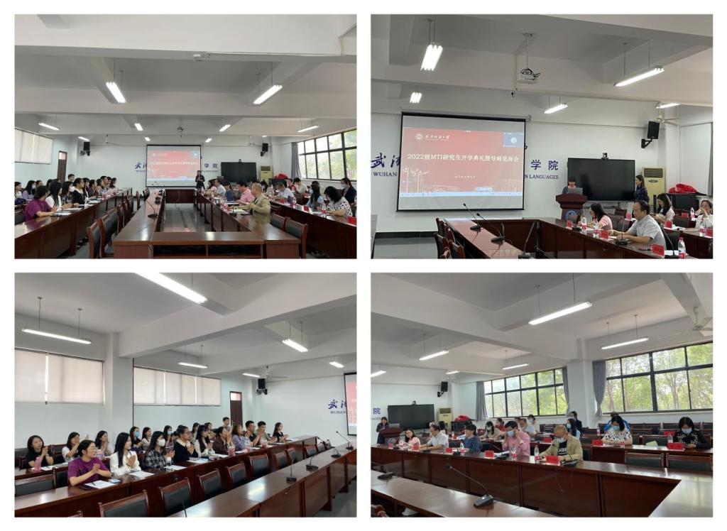 2022年9月22日,2022级翻译硕士研究生开学典礼暨导师见面会在04-303教室隆重举行。中国竞彩 院长谭燕保教授、党委书记胡中原、副院长罗绮伦、副院长刘方荣、副书记彭阳慈航、MTI教育中心主任刘珊、全体硕士生导师、部分任课老师、研究生教学秘书及辅导员老师、2022级全体MTI研究生及21级研究生代表参加典礼。会议线上线下同时进行,由MTI教育中心陆雪芹副主任主持。