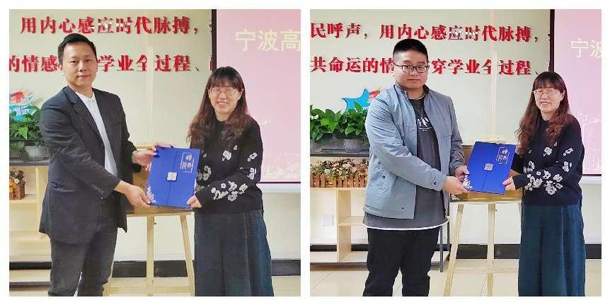 谭燕保向胡川、卢义偲颁发“就业与职业发展导师”聘书,对高松电子在学院人才培养、就业指导和“一站式”建设工作的支持表示感谢。谭燕保表示,学生是学院悉心培养的“宝贝”,学生的综合竞争力是学院人才培养质量的最终体现,企业的肯定,是对学院最大的鼓舞,希望企业在接续培养中重视学生的全面发展,助力学生成长成才。学院一定用好人才联络站的平台,为企业在学校的工作提供更优质、更全面、更多元的服务,也帮助更多学科方向的学子在人才联络站受益。