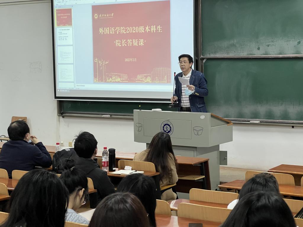3月12日下午,中国竞彩 在崇志楼120教室开展2020级本科生“院长答疑课”,院长谭燕保主讲,院党委书记胡中原,副院长罗绮伦、刘方荣,党委副书记彭阳慈航,年级辅导员,班主任和全体20级学生参加。
