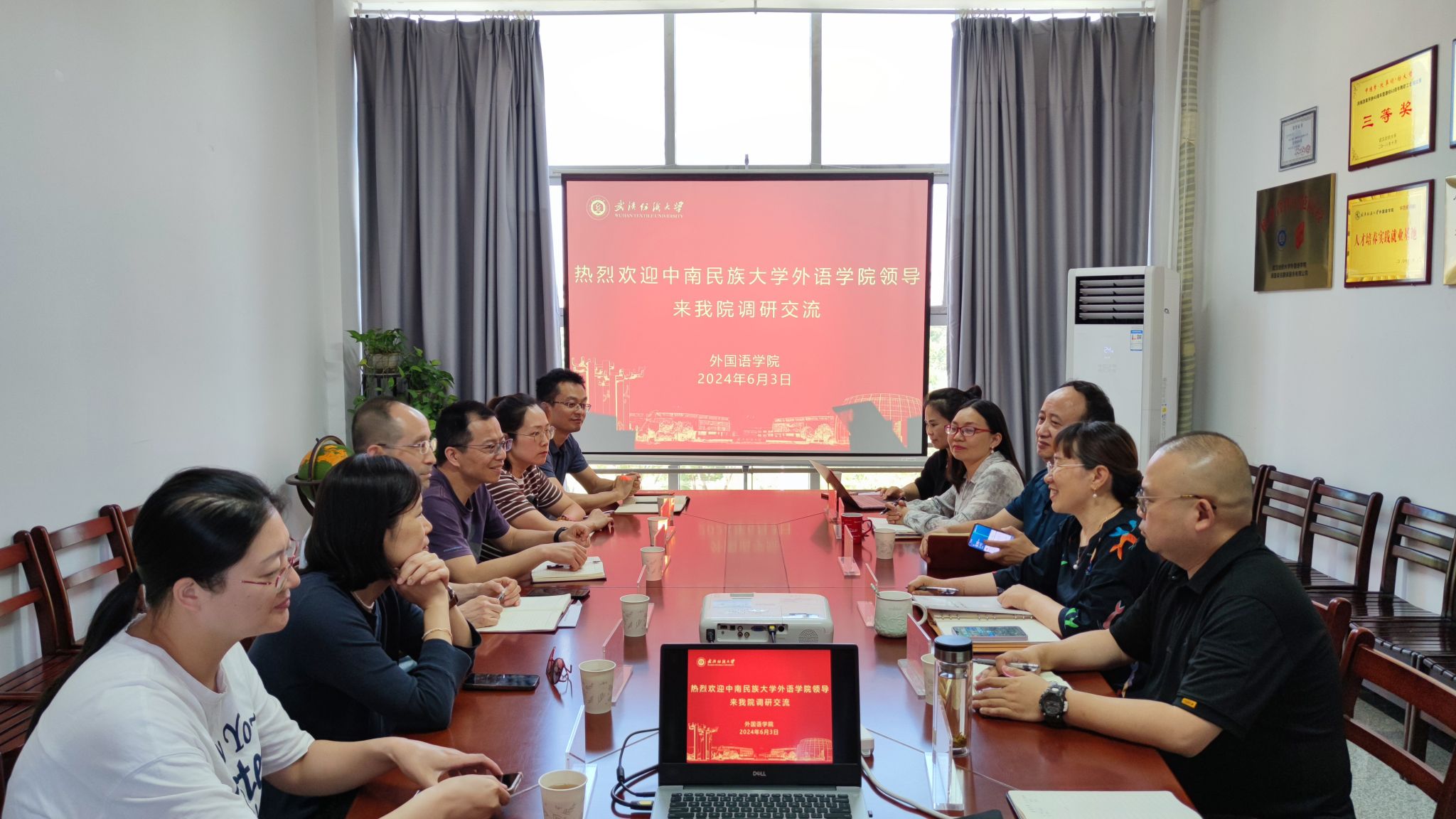 6月3日,中南民族大学外语学院一行六人,由院长易立新率领,来到中国竞彩