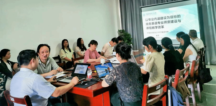 副院长袁奇教授,进行题为“以专业内涵建设为目标的商务英语专业师资建设与课程教学改革”的专题交流。院长谭燕保教授、副院长罗绮伦、商务英语系教师及大学英语部教师共同参与。论坛由罗绮伦主持,