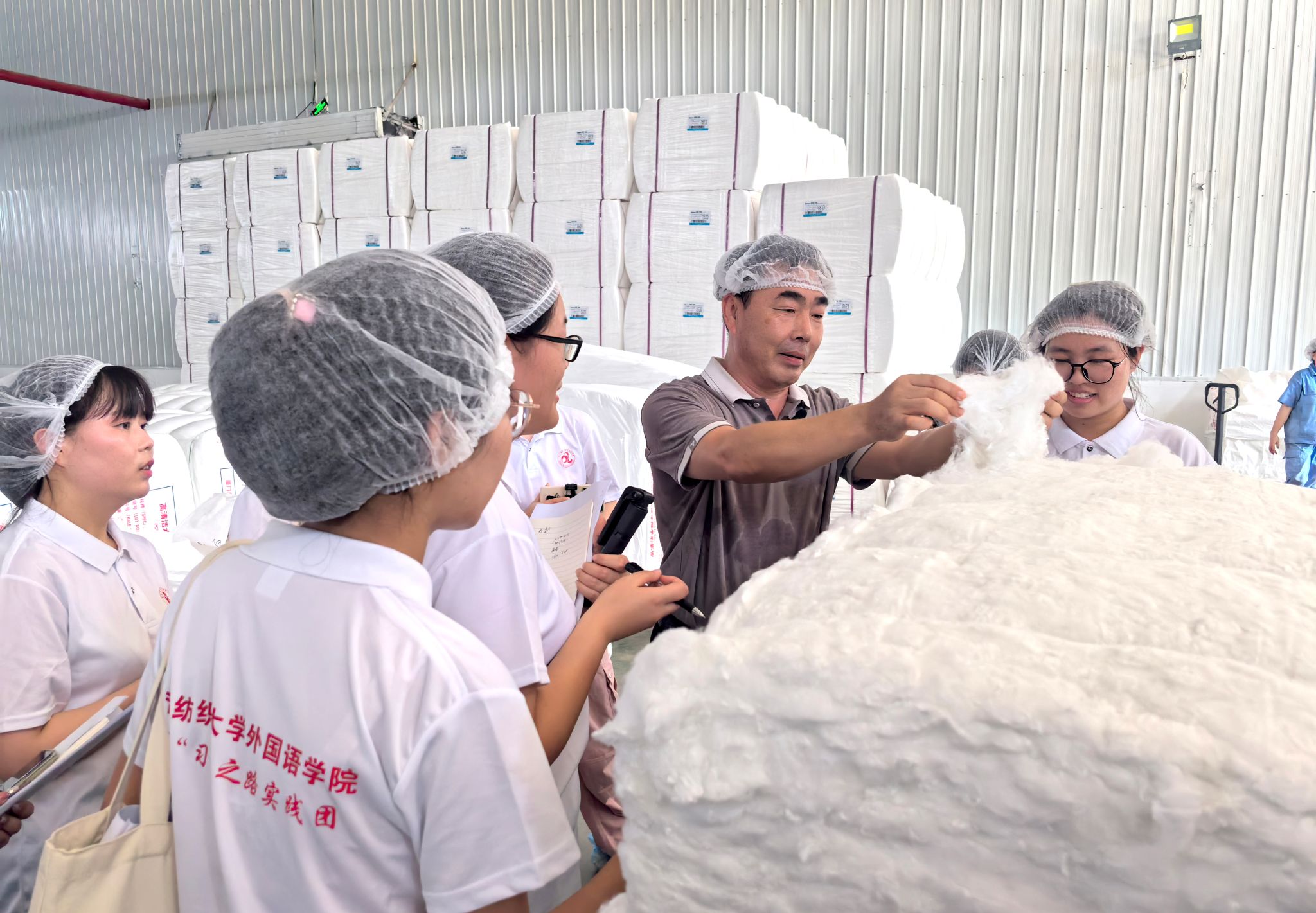 “我们公司主要生产的是特种布,像消防员所穿的制服的原料主要就是我们特种布之一的阻燃布,可以在火场一定程度上保护消防员们的生命安全……”“无纺布的应用越来越广泛,像日常生活中的口罩、尿不湿、面膜等原料都是无纺布制成的……” 近日,武汉纺织大学研“习”之路实践团走进赤壁纺织外贸企业参观调研,开启探寻三线建设历史,赓续红色纺织文化实践之旅。