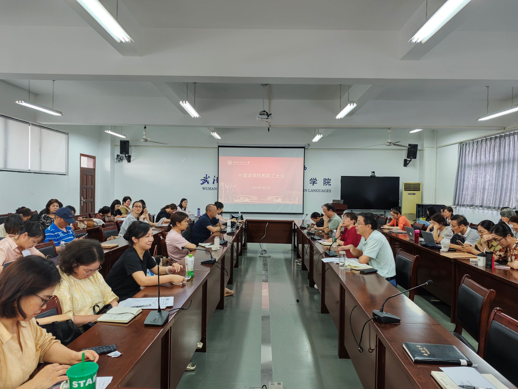 在04-303会议室召开全体教职工大会,开展政治理论集中学习,学院党委书记胡中原主持会议,全体教职工参加会议。