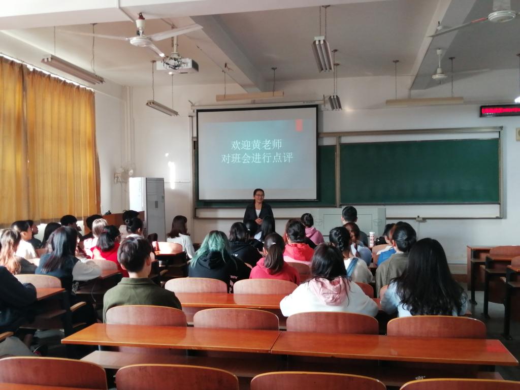 黄运平对此次主题班会给予了的高度的肯定和赞赏,认为班会主题设计好,同学们参与性高,体现出英语11801班良好的精神风貌和整体素质,她对同学们提出了四点希望:一是班会在形式上可以多种多样, 希望每一位同学能珍惜每一次班会锻炼的机会,锻炼自己的语言表达能力。二是将个人理想融入中华民族伟大复兴的中国梦,同学们的梦想朴实、普通,正是这千千万万的小梦想汇集成一个伟大的“中国梦”,在追梦的过程中要时刻牢记脚踏实地,培养自己的爱国情怀。要常怀一颗仁爱之心,因为爱是满满的正能量,要爱生命、爱生活,爱国、爱家和爱他人。三是要珍惜同窗友谊,给将来留下美好的回忆,四年的大学同窗情是人生中最纯真、最质朴的;四是大二年级是大学最重要的分水岭时期,同学们要自觉养成自律的好习惯,努力克服自己身上的各种惰性,合理规划大学生活,做到学有所乐、学有所成。