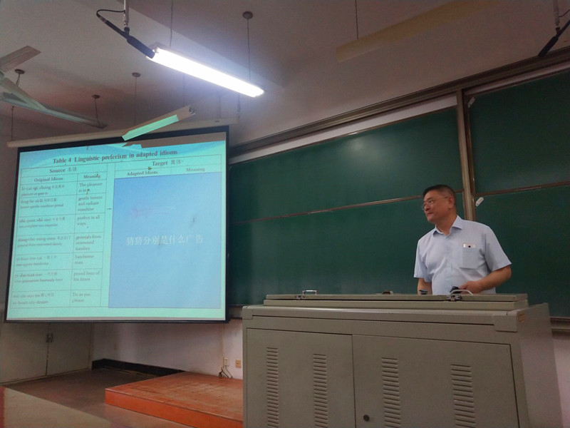 报告期间,罗澄教授用自己丰富的经历和渊博的知识,向外院师生们详细介绍了英语吉语,并将其和中国传统吉语进行比较,结合传统仪式庆祝、人的取名、产品名称翻译、广告和缩略词形成等,探讨了语言偏好的各种形式和使用方式。