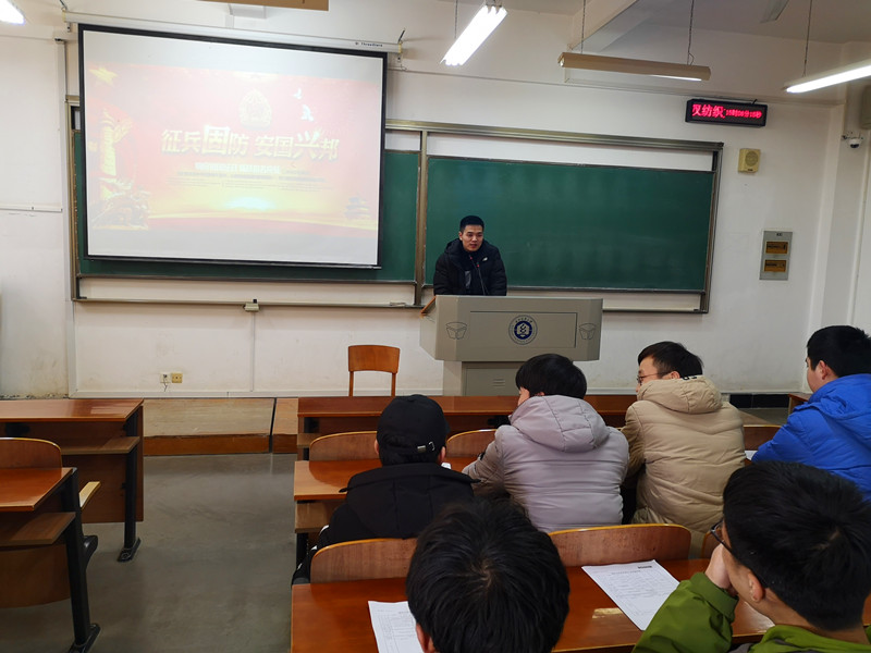 2月24日下午,中国竞彩 2019年大学生征兵政策宣讲会在3号教学楼111教室召开,学院全体男生均参加会议。本次宣讲会特邀学院2017级学生、退伍军人于天伦进行军旅生活分享。宣讲会由辅导员阎浩老师主持。