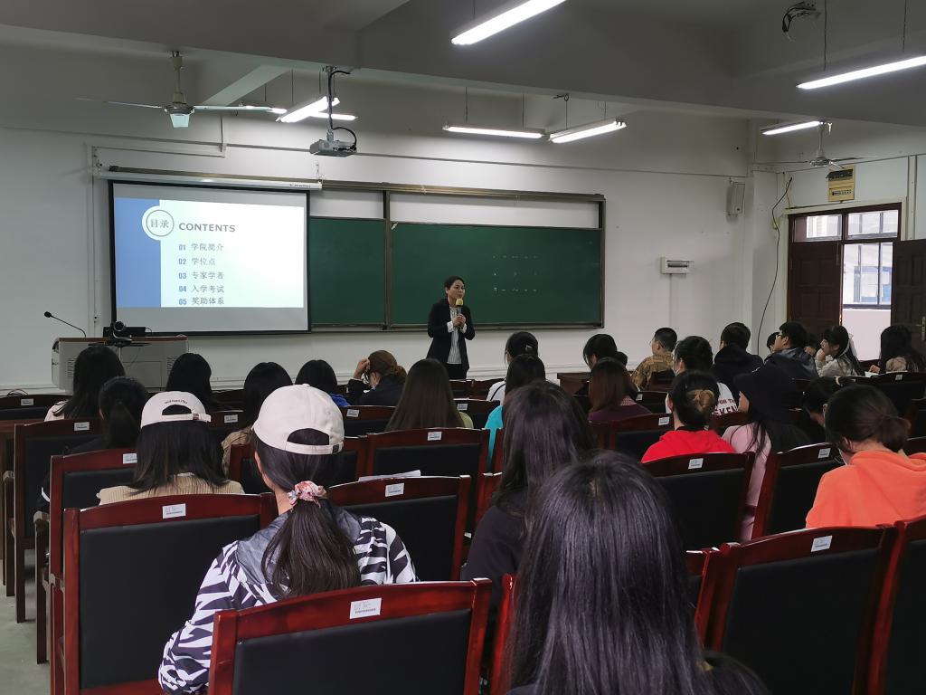 、学位点、专家学者、入学考试、资助体系五个方面,向在场同学们详细介绍了本院MTI。