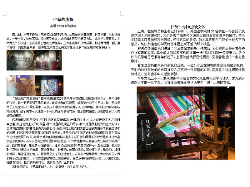 活动过后,同学们结合参观的内容,或选取印象最深,或选取兴趣最浓的一个视角,写下了自己的感想和体会。