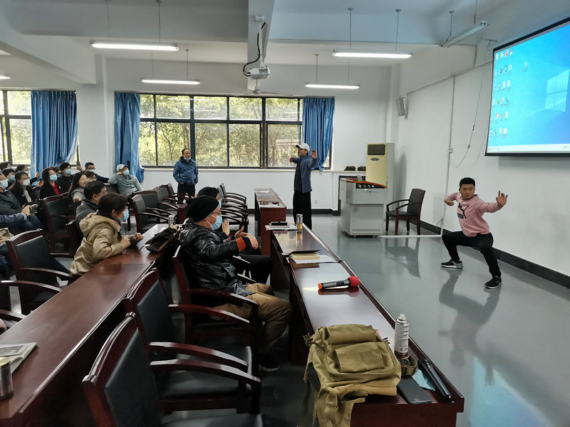 邀请,来到崇文楼为学院教职工教授“八段锦”健身功法。