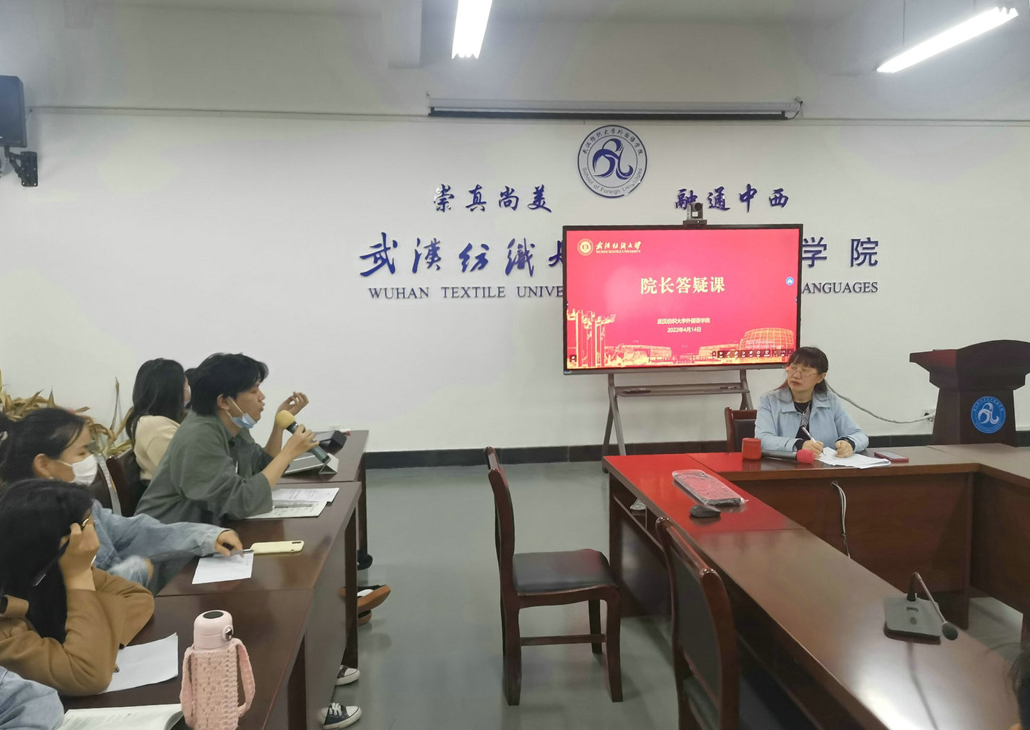 王芳首先对谭院长的研究领域和学术背景进行了介绍,并表示此次答疑课分为讲座和互动两个部分,旨在帮助同学们解答在课程学习、考研择校、留学深造、校园生活等方面的疑虑问题,鼓励同学们积极提问。