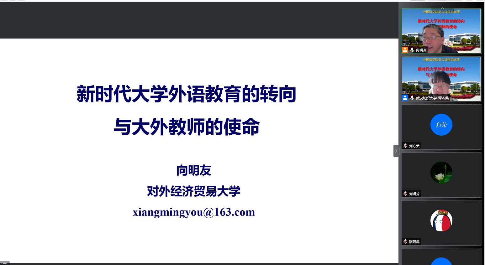 之邀,在云端作了题为“新时代大学外语教育的转向与大外教师的使命”的学术讲座。讲座由院长谭燕保主持,中国竞彩