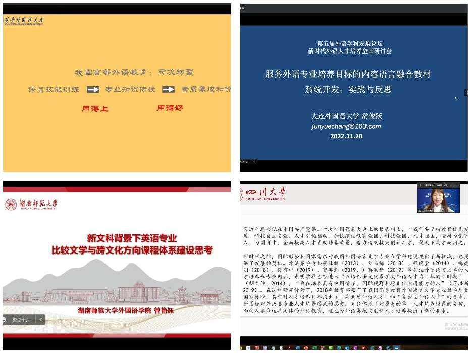 联合主办的第五届外语学科发展论坛暨新时代外语人才培养全国研讨会如期在线召开,来自华中科技大学、四川大学、华东师范大学、郑州大学、湖南师范大学、西安外国语大学、大连外国语大学、华中师范大学和武汉纺织大学等10余所高校的专家学者,以及长期从事外语教学、热爱外语学科的师生共计二百余人相聚线上,就外语学科定位与内涵建设﹑中国特色外语学科人才培养体系创新与实践﹑课程思政与中国外语人才培养﹑外语人才培养与校本特色建设﹑外语学科专业教材建设与教学改革等8大热门议题展开了广泛而深入的探讨,近4800人在线观看。
