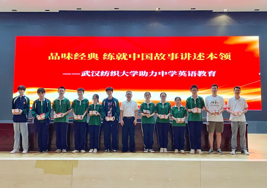 “品味经典 练就中国故事讲述本领”活动上,罗锦银结合纺大校训“崇真尚美”和崇阳一中校训“明德向学 健体尚美”共有的“尚美”,阐释两校人才培养的共同理念和文化传承的精神追求。结合自身经历,罗锦银与师生们畅谈读书、读好书、读经典书目的意义,鼓励同学们在双语经典阅读中传承优秀文化,汲取中国力量,以备将来同学们在更广阔的世界舞台上讲好崇阳故事、楚文化故事、中国故事。罗锦银向崇阳一中送上纺大2023届、崇阳一中2019届毕业生考研喜报,并代表学校为崇阳一中学生代表赠送了300余册英文书籍。同时,招就处向参会领导和高三年级班主任宣传招生政策,中国竞彩
