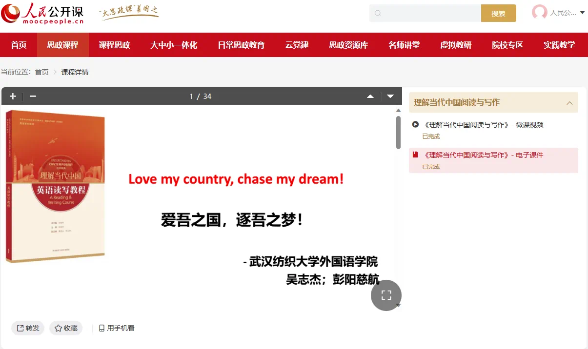 《理解当代中国阅读与写作》课程团队与马克思主义学院共同研磨的大中小一体化思政课程、课程思政示范课的单个课程视频已成功上线(人民公开课-大思政课MOOC平台 (people.cn)),荣列为“人民公开课大思政示范课”。