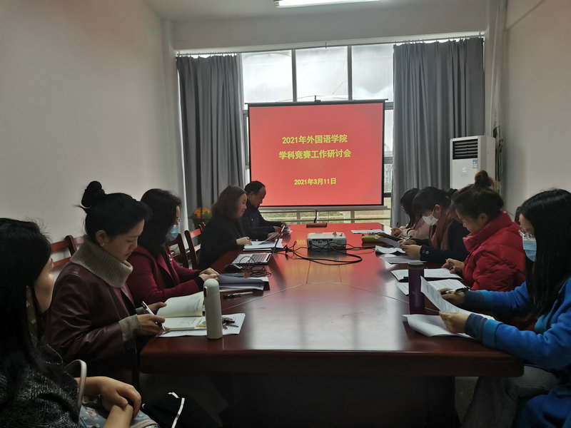在崇文楼313会议室召开2021年学科竞赛工作研讨会,学院副院长罗绮伦,副书记王芳及各竞赛负责老师参加会议。