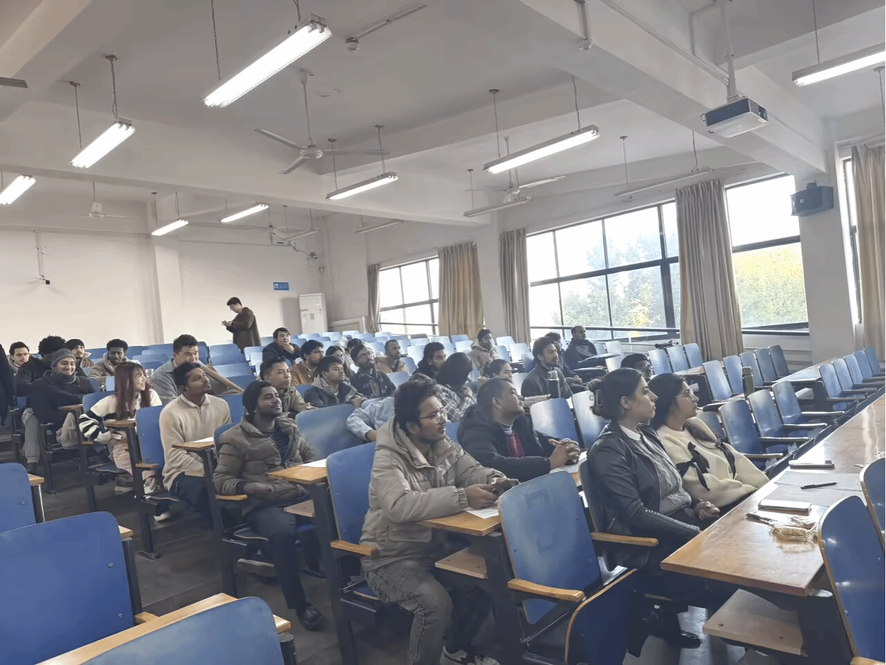 周丹教授为纺织工程专业的留学生们带来了一场题为《解码语言的经纬》(Decoding the Fabric of Language)的精彩讲座。讲座以“纺织汉语”为切入点,通过生动的双语教学与沉浸式互动,带领留学生们开启了一段探寻中华文明“经纬”的文化之旅。