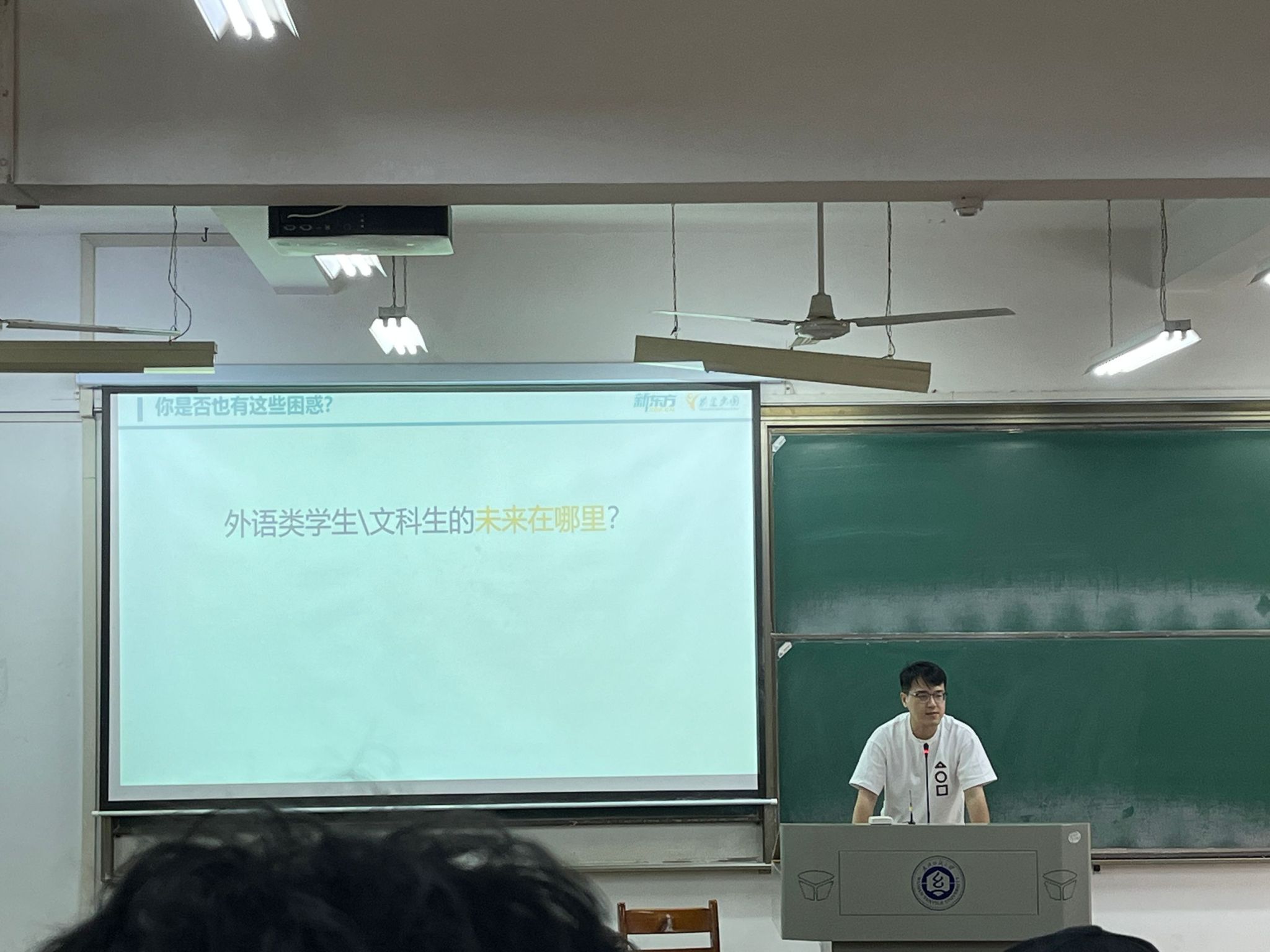 邀请了新东方教育科技集团的高级教师为低年级同学开展成长导航---学业生涯规划。学院大一、大二年级全体同学参加讲座。