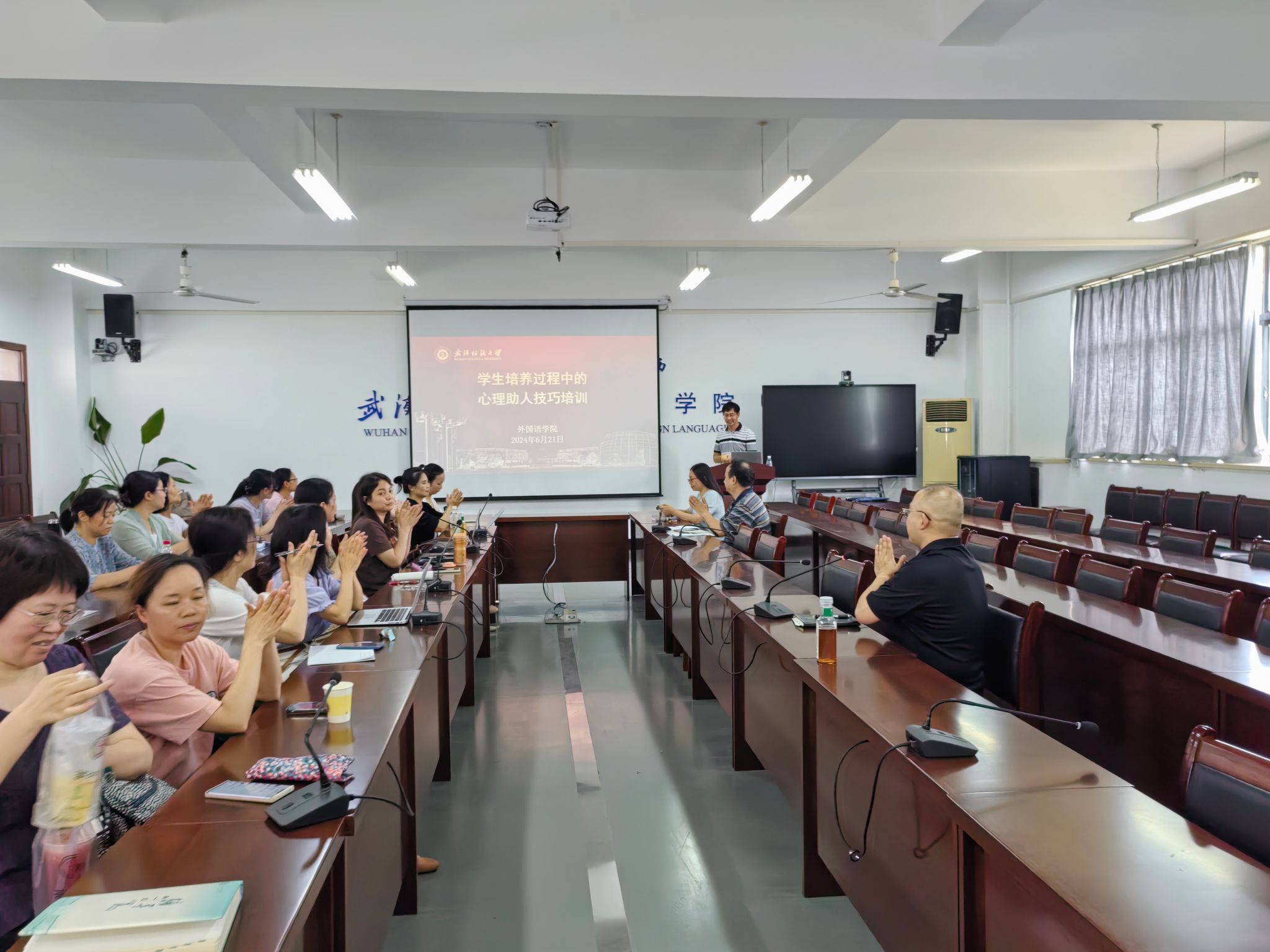 在崇文楼303会议室开展学生培养过程中的心理助人技巧培训会。学院相关负责人,全体班主任、本科生导师、硕士生导师、辅导员参加此次会议。