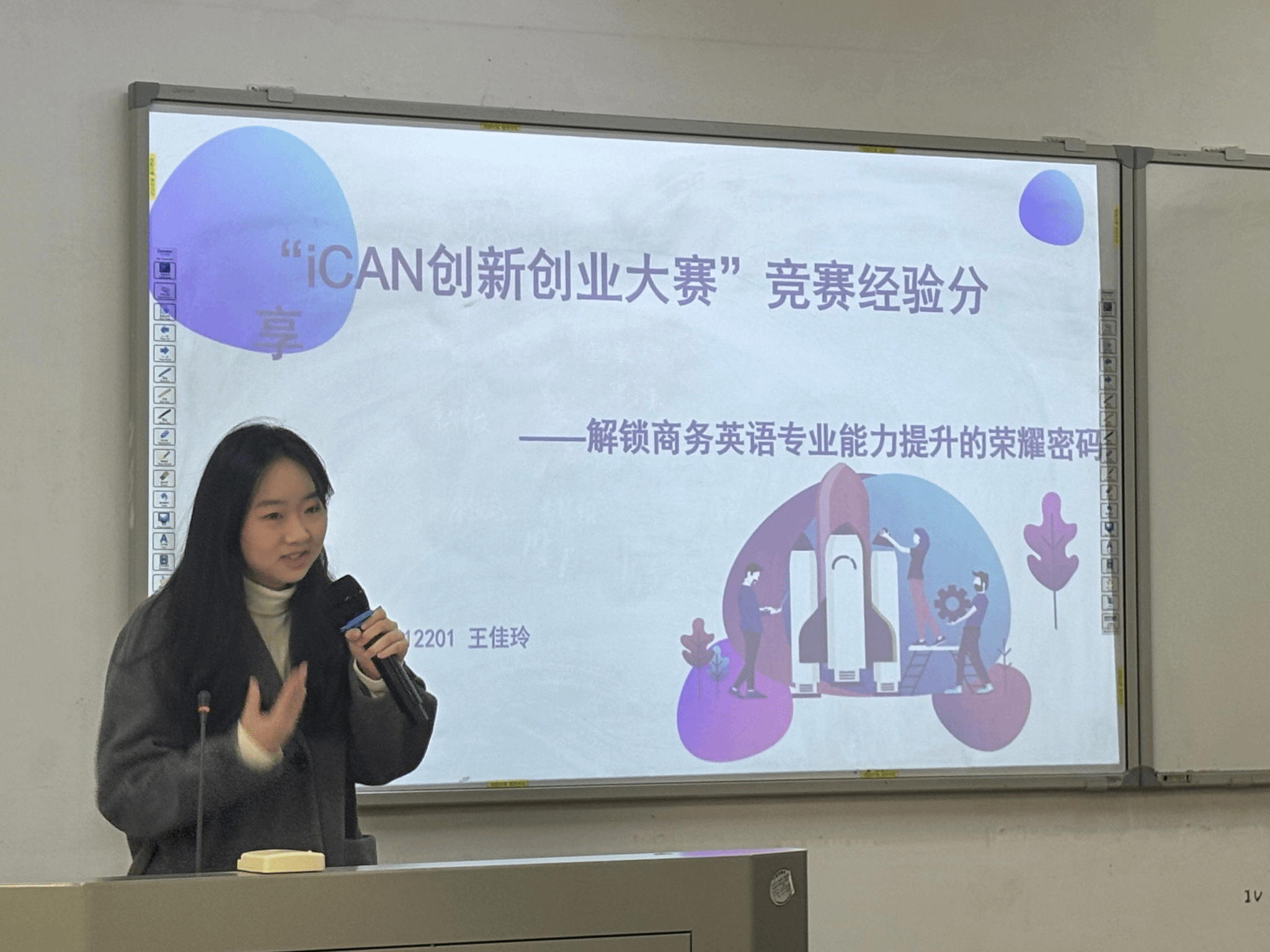 论坛最后,王佳玲同学分享了她在“iCAN创新创业大赛”中的经验。她详细介绍了竞赛的内容、赛题方向和参与对象,并分享了如何准备比赛,包括刷题、查阅小红书经验贴、单据和图标分析等。王佳玲同学强调了不放弃、有探索欲与团队合作的精神以及策划案撰写、直播间搭建、脚本打磨和短视频剪辑的重要性。在收获与反思环节,她提到了深刻认识跨境电商、了解差距、明确未来努力方向、自身定位清晰、赛前多面考虑以及即兴问答思维发散等方面。在问答环节,她针对策划案的内容进行了详细解答,强调了市场分析、目标客户定位、营销策略、财务预算等关键部分。