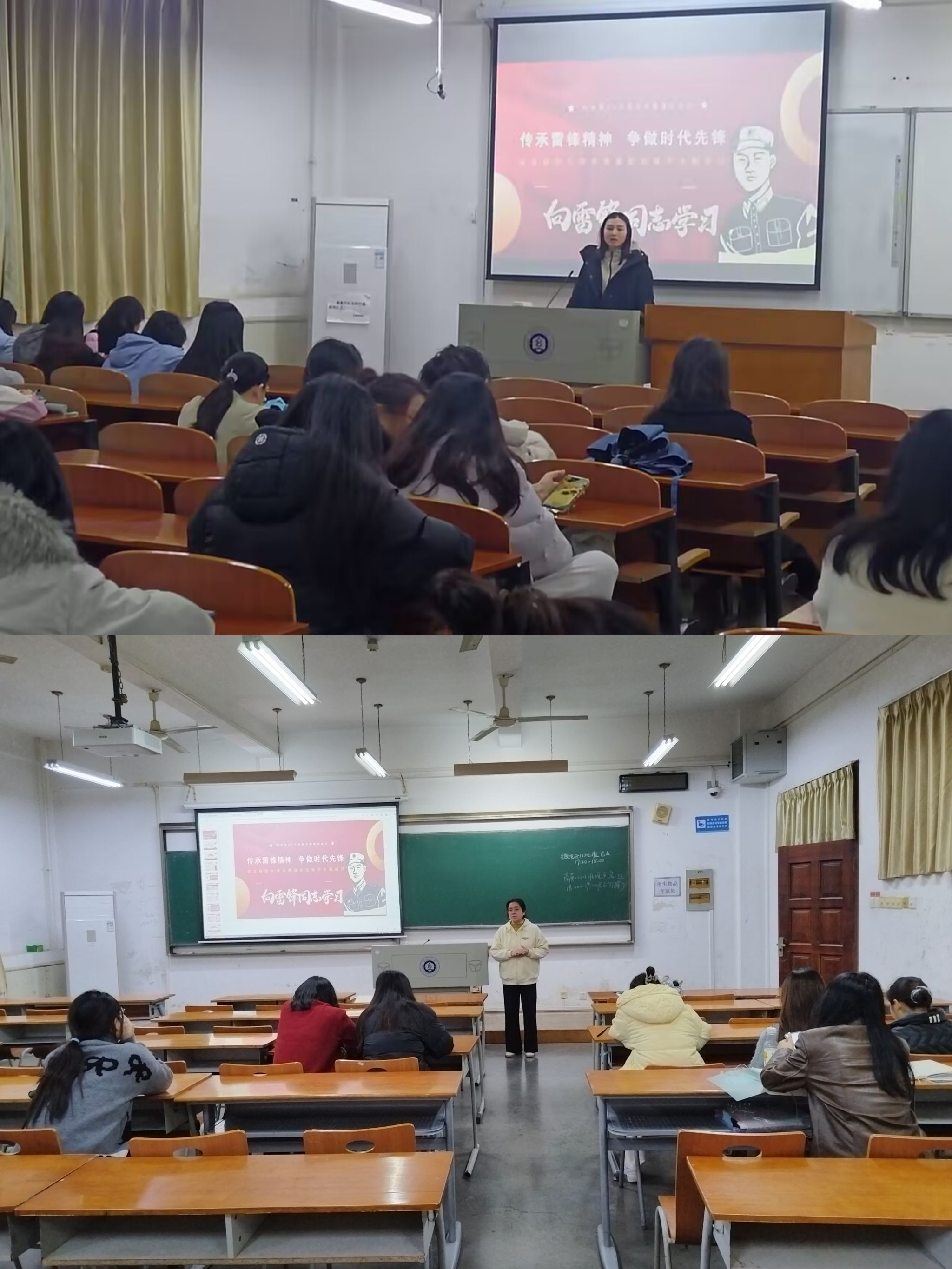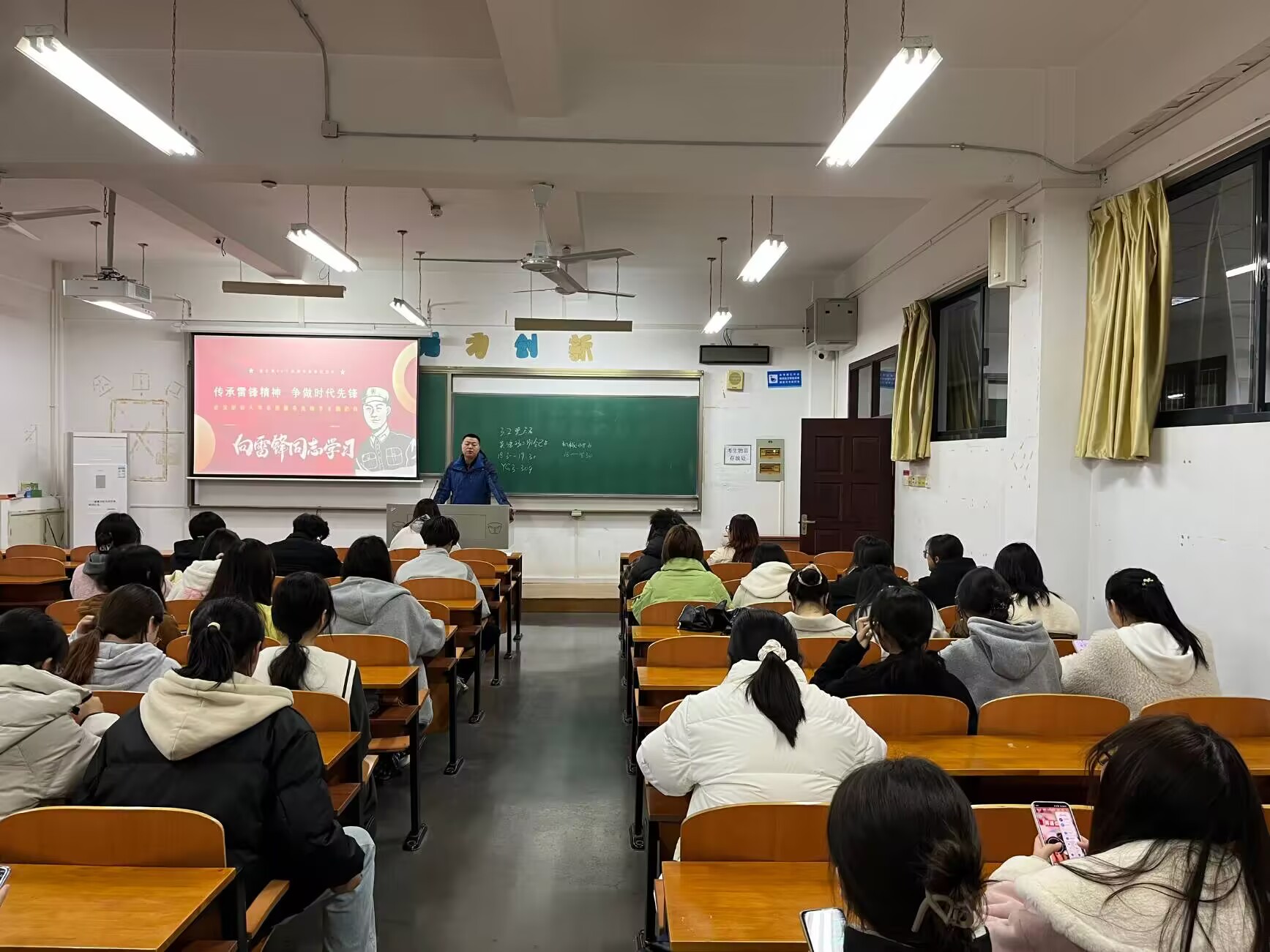 全体辅导员、班主任通过线下方式,深入各班级组织召开晚点名,开展“传承雷锋精神,争做时代先锋”主题班会。学院全体学生参会。此次班会旨在让同学们深入了解雷锋和雷锋精神,并积极践行雷锋精神的时代内涵。此次班会还对即将开展的志愿服务先锋节活动进行了详细安排。
