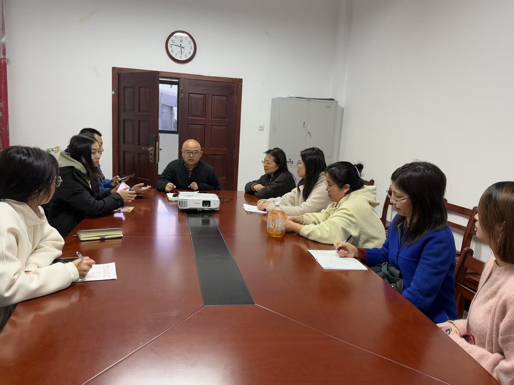会前,学院党委副书记彭阳慈航组织全体班主任学习了近期全省高校工作重点。